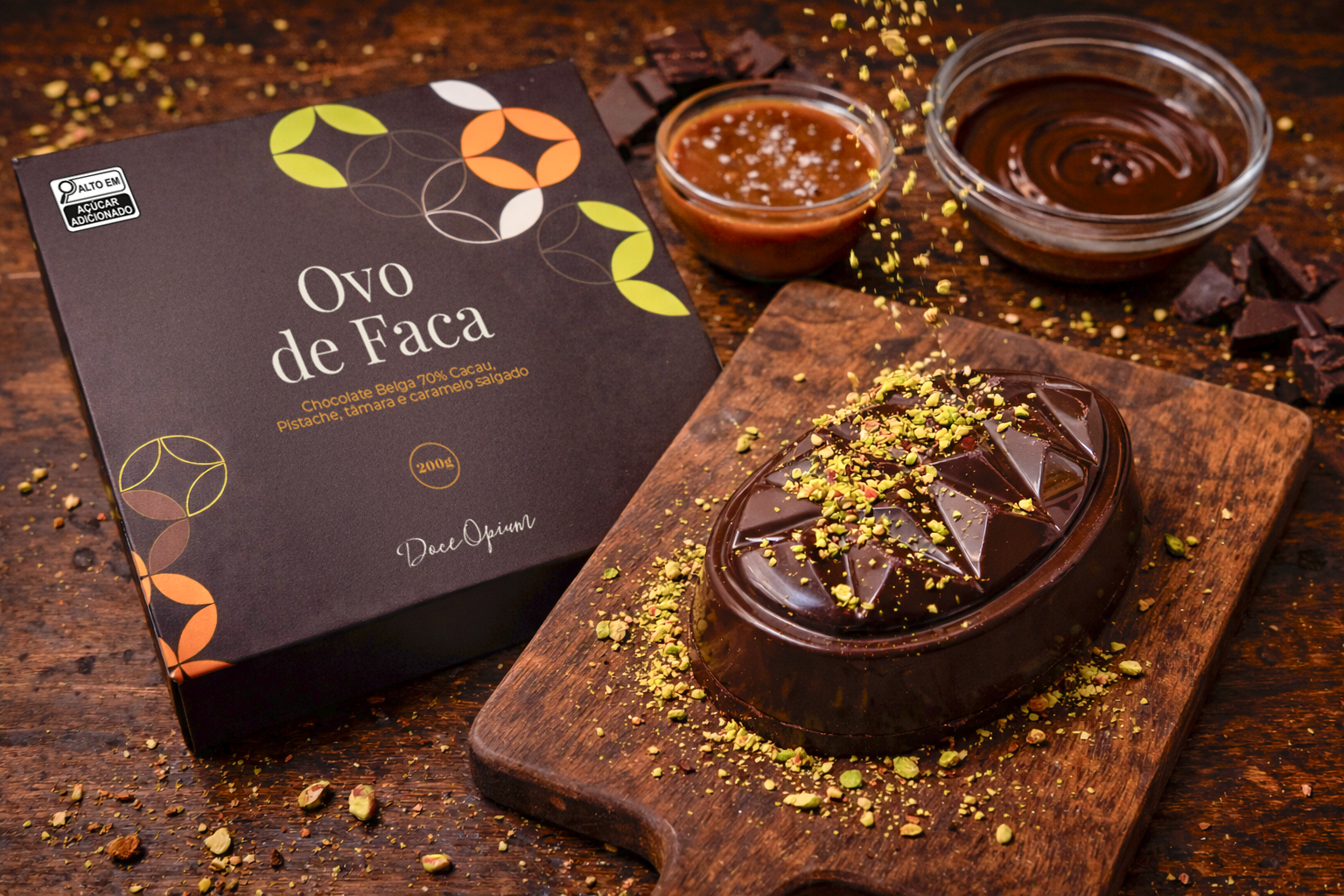 Nosso Ovo de Faca 70% cacau foi criado para quem aprecia chocolate de verdade — com personalidade, profundidade e elegância. A casca possui alto teor de cacau, trazendo notas intensas e levemente amargas que equilibram perfeitamente a riqueza do recheio.